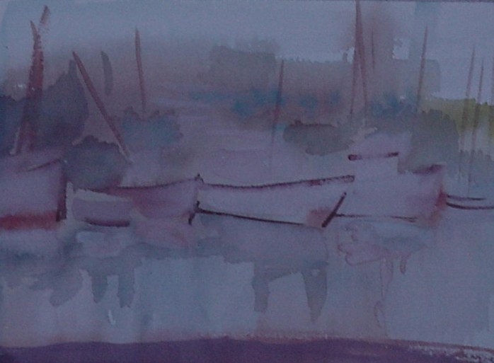 The Fog, watermedia on paper, copyright SGHolland around 1994, Shilshole Marina, WA, private collection of WEM